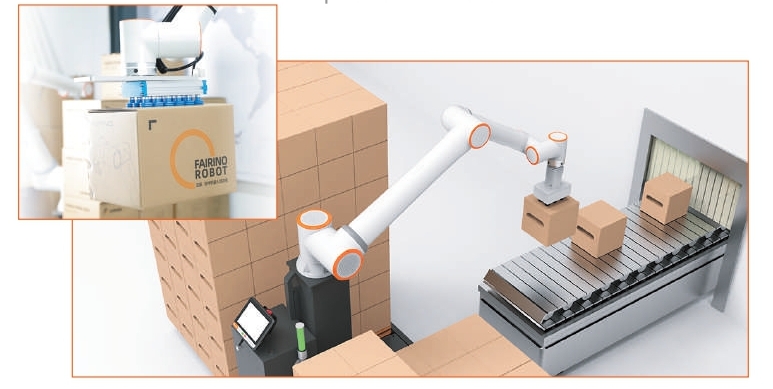collaborative robots can perform round-the-clock automated palletizing work, effortlessly and quickly transporting goods to their destinations, saving time and energy. This frees employees from fatigue and repetitive tasks, allowing them to engage in more meaningful work. Additionally, there is no need for safety barriers, enabling true human-robot collaboration.